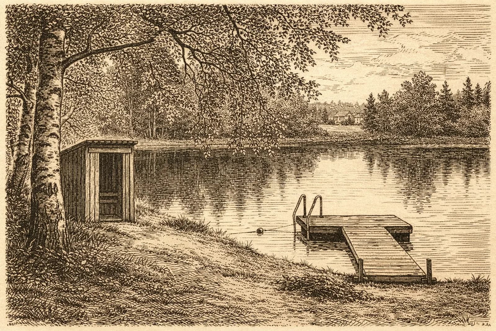 Rauhallinen uimapaikka Karhunpään kylässä, kylätalon lähellä.
